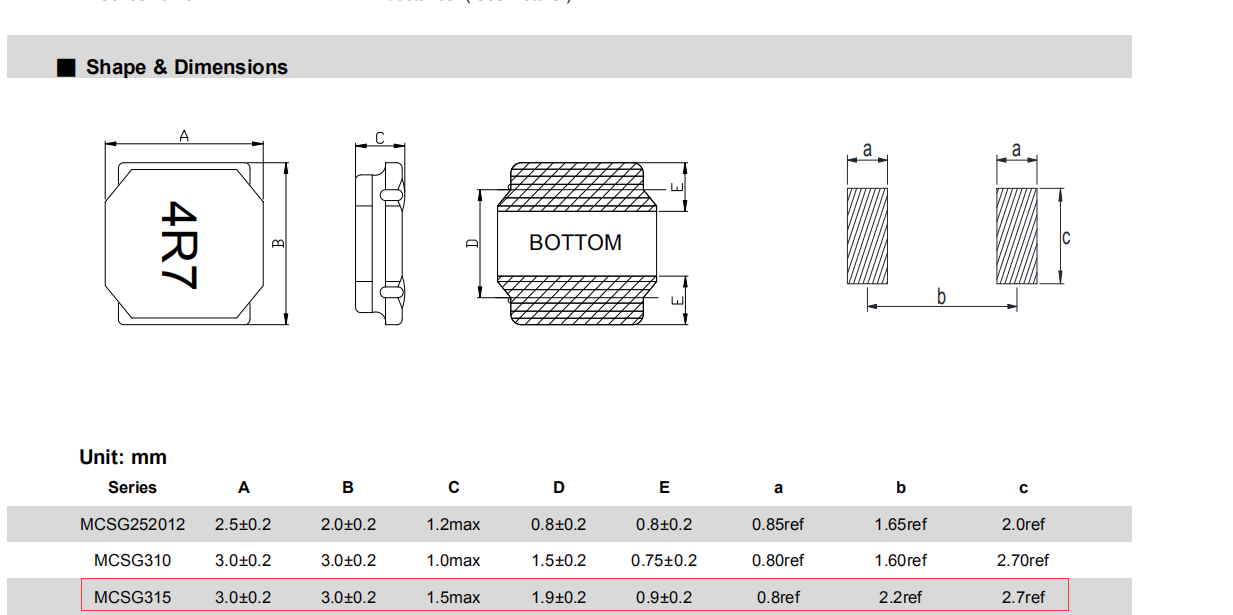 MCSG315Z1R0N貼片電感電氣參數(shù):