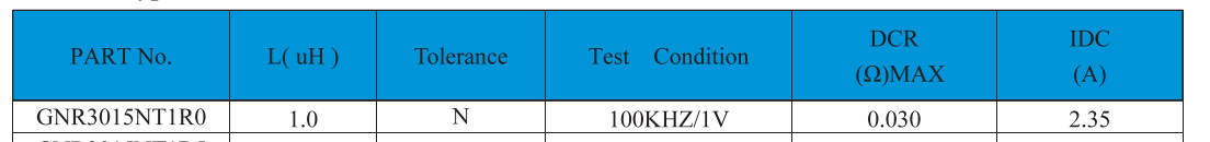 GNR3015NT1R0貼片電感電氣參數(shù):