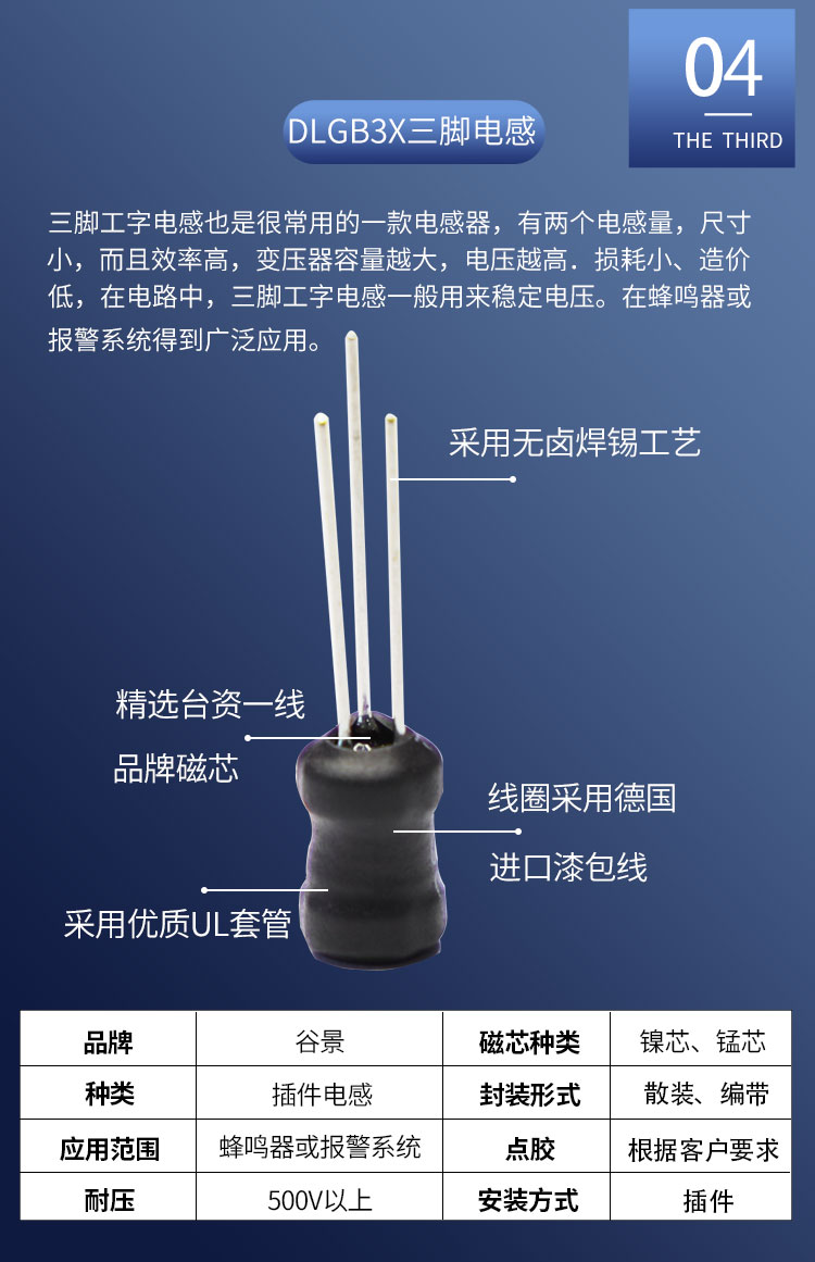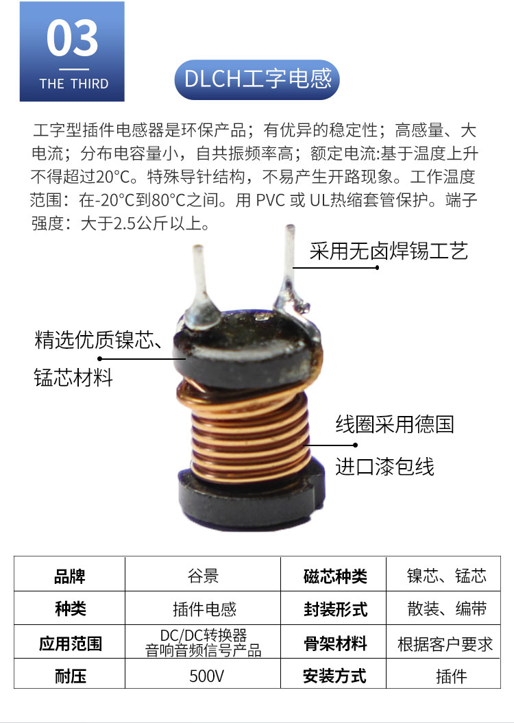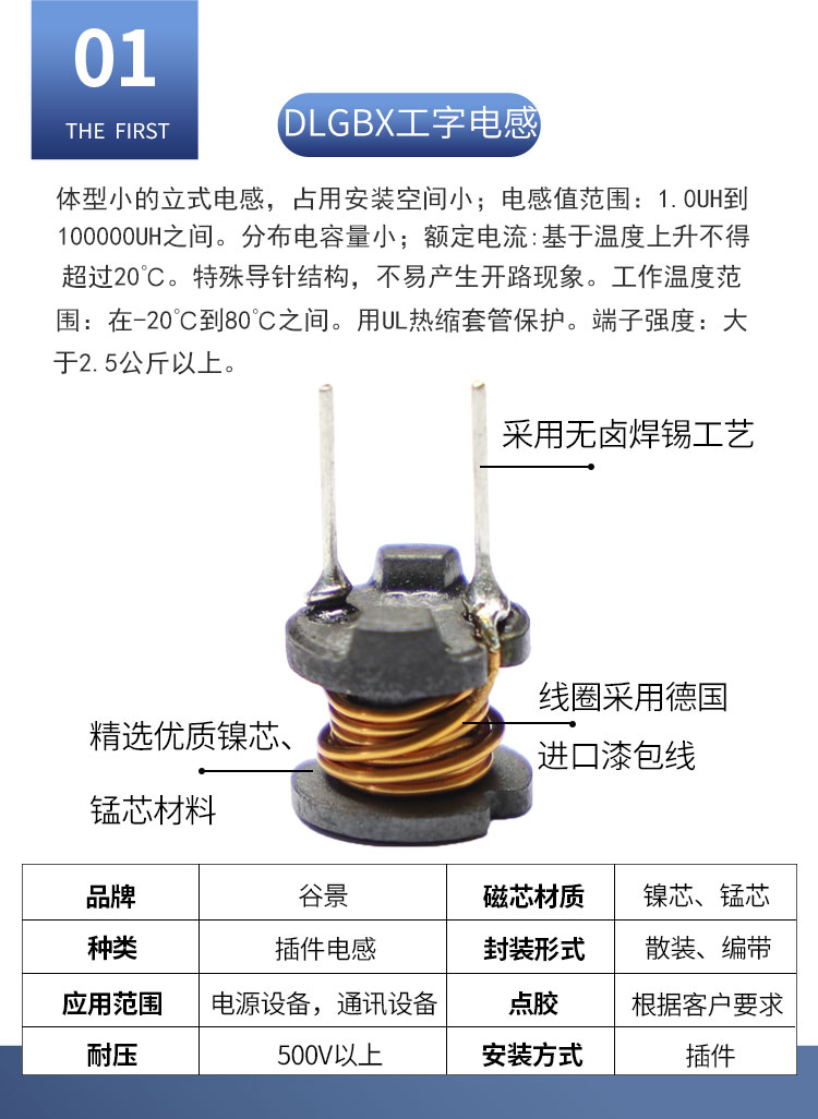 DLGBX工字電感:尺寸:4.5*7.0-18.0*20.0;感量:1uH-100mH;精度:J級(jí)(±10%)、K級(jí)(±10%)、M級(jí)(±20%);電流量:25mA-16.5A;特點(diǎn):小體積,高儲(chǔ)能;適用于:電視、電源供應(yīng)器、LED照明等。詳情咨詢(xún):0512-65368862。工字電感,工字電感廠家,工字電感0406,工字電感0608,工字電感0810,工字電感0912,工字電感1010,工字電感1012,屏蔽工字電感,47uh工字電感,33uH工字電感,220uH工字電感,工字電感生產(chǎn)廠家,電感定制,屏蔽工字電感,杭州工字電感,南京工字電感
